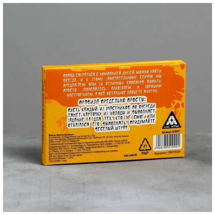 Купить игра для компании "фанты буханты" 20 карт от 100 руб. с доставкой до пункта выдачи в Ступино. Интернет магазин ДекаМаркет. Оплата при получении.
